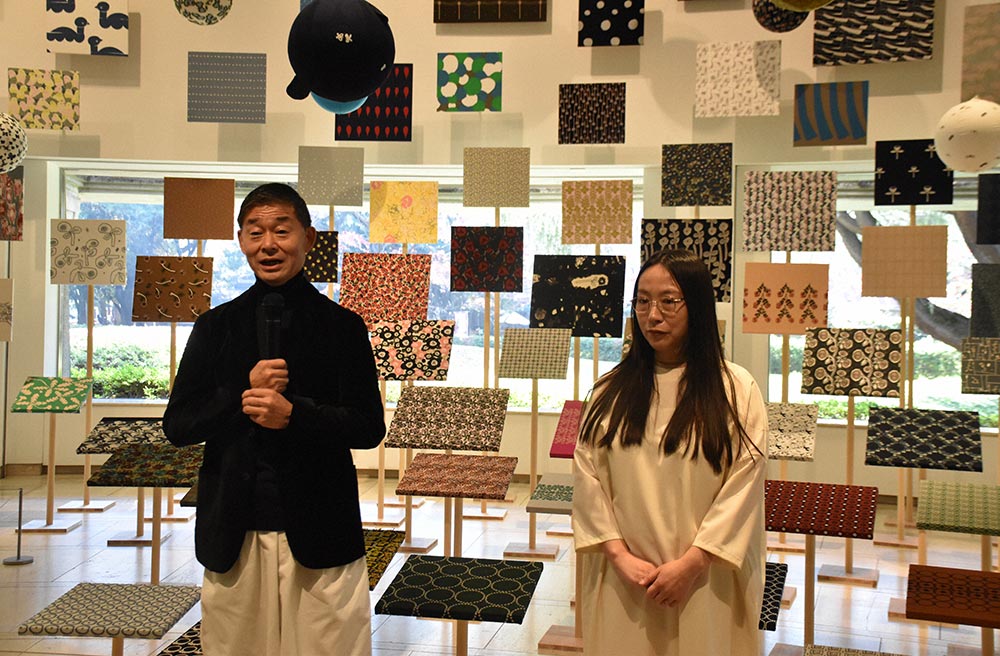 「つぐ」という言葉には、さまざまな漢字が当てはまるが、思いを継いで布を接ぎ、次なる道へと歩み続けるミナペルホネンの姿勢が詰まった展覧会となっている。皆川さんは「さまざまな『つぐ』がものづくりの中にあることを感じてほしい」と話す。2月1日まで。