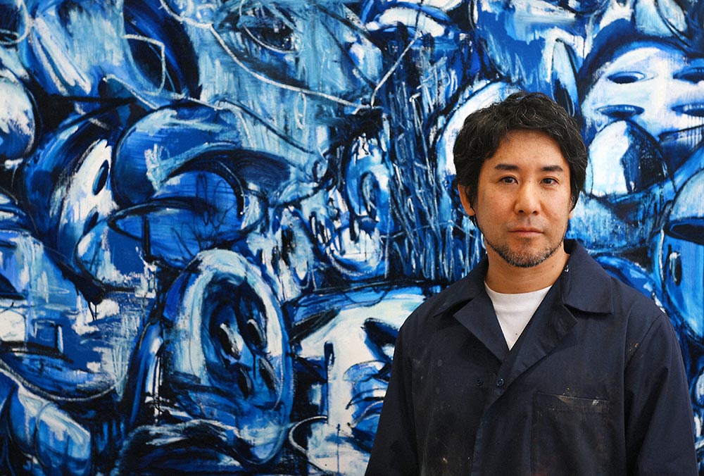 東京都内のアトリエを訪ねると、所々に絵の具がついた黒いジャケットを着て、描きかけの作品に向き合っていた。取材を始めようとすると「絵の具がついちゃうから、隣の部屋がいいかな」と気遣ってくれた。素朴で控えめな印象だが、その作品は国内外で注目を集めている。