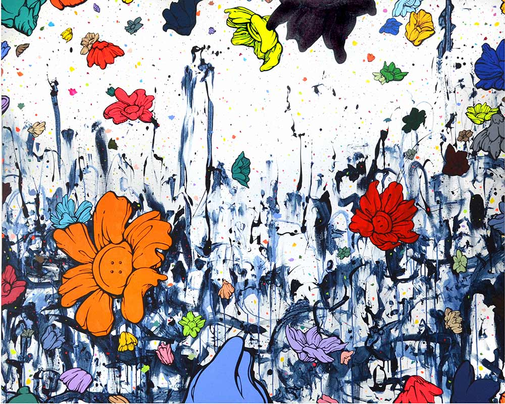 2021年の東京五輪でスケートボード会場の壁画を制作。その後も独ポルシェとアートカーを作り、モードの世界でも仏クリスチャン・ルブタン、コムデギャルソンが展開するブランド「タオ」とコラボするなど、引く手あまた。数々の作品で描かれているボタンフラワーの発想のきっかけは、移民国家の米国にある。