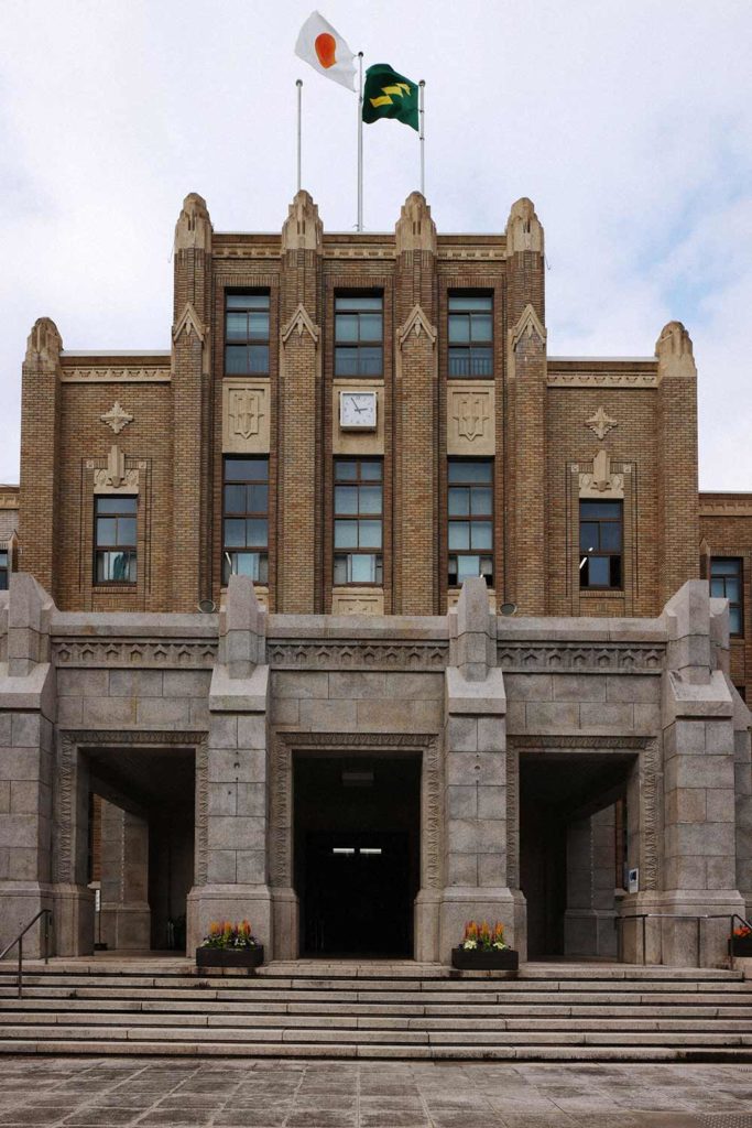 宮崎県庁本館(宮崎市)の塔屋は、「垂直」を強く意識した「ネオ・ゴシック調」のたたずまいだ。大きなフェニックスや埴輪(はにわ)、花に彩られた前庭など、南国情緒満点だ。