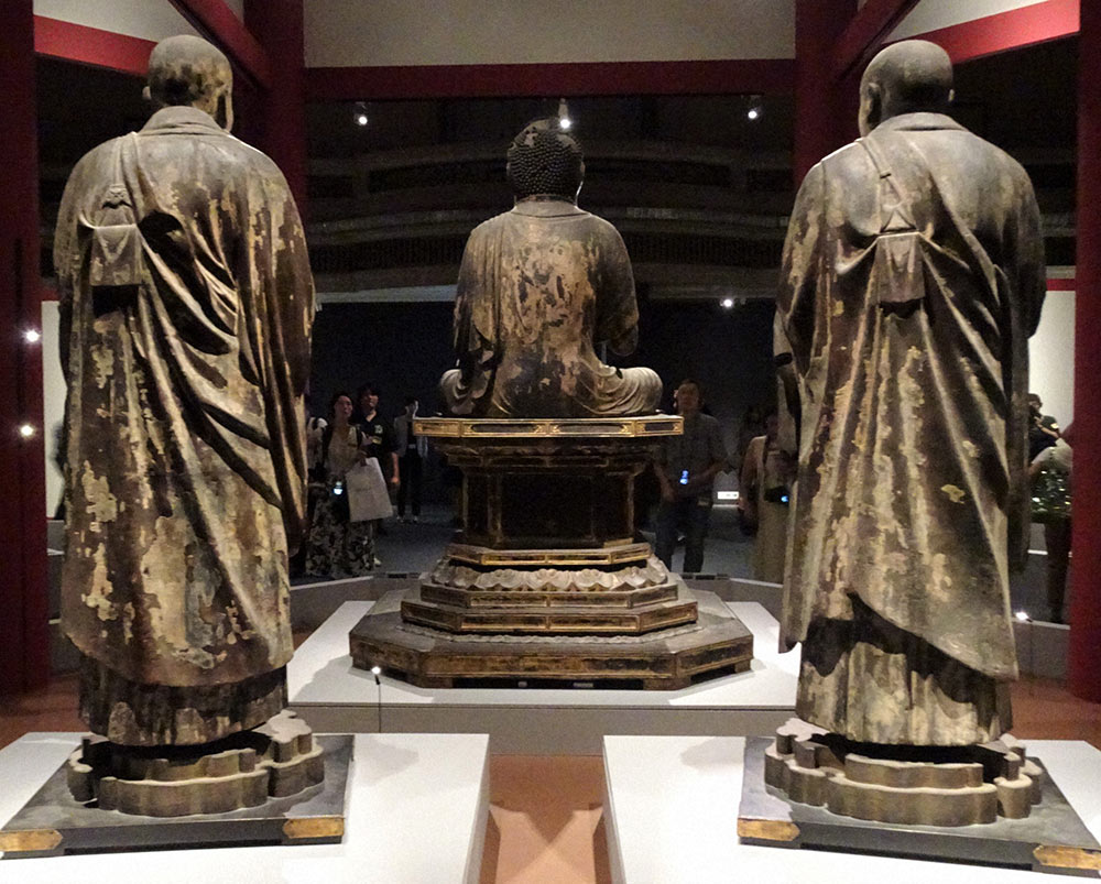 特別展は7体の国宝仏像を間近で見学できるだけでなく、仏像をすべての方向から眺められるようにした。そのため、弥勒如来坐像は背中にある光背を外した状態で展示している。
