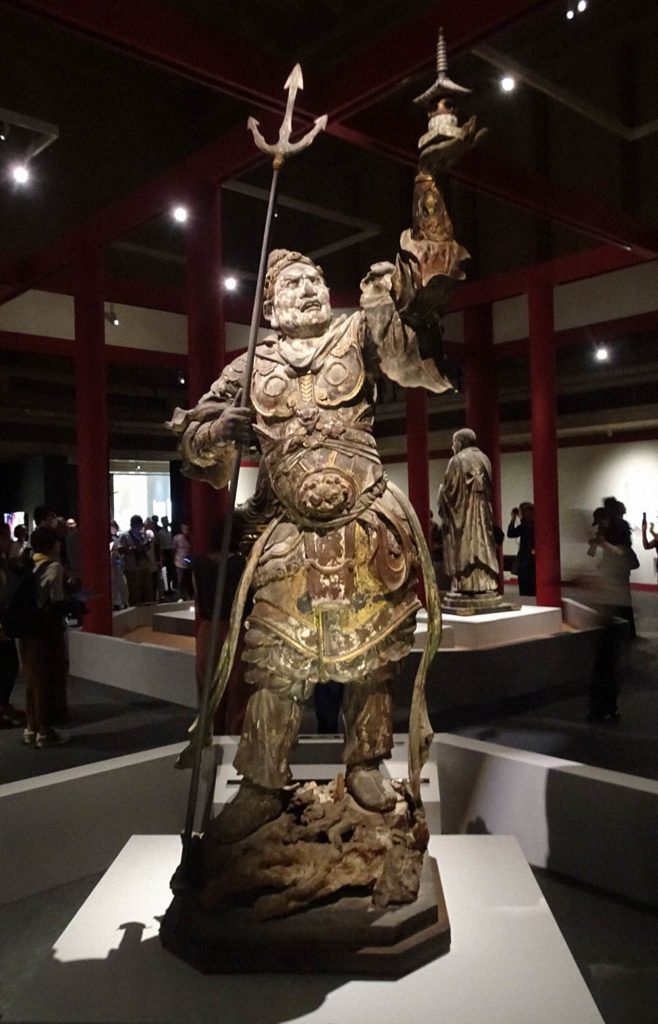 特別展には、北円堂から無著・世親菩薩立像も出展された。5世紀ごろにインドで活躍した無著と世親の兄弟の姿を彫りだしたもので、写実的な表情や法衣の流れるような表現に息をのむ。
